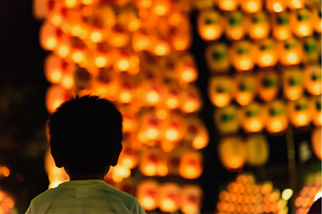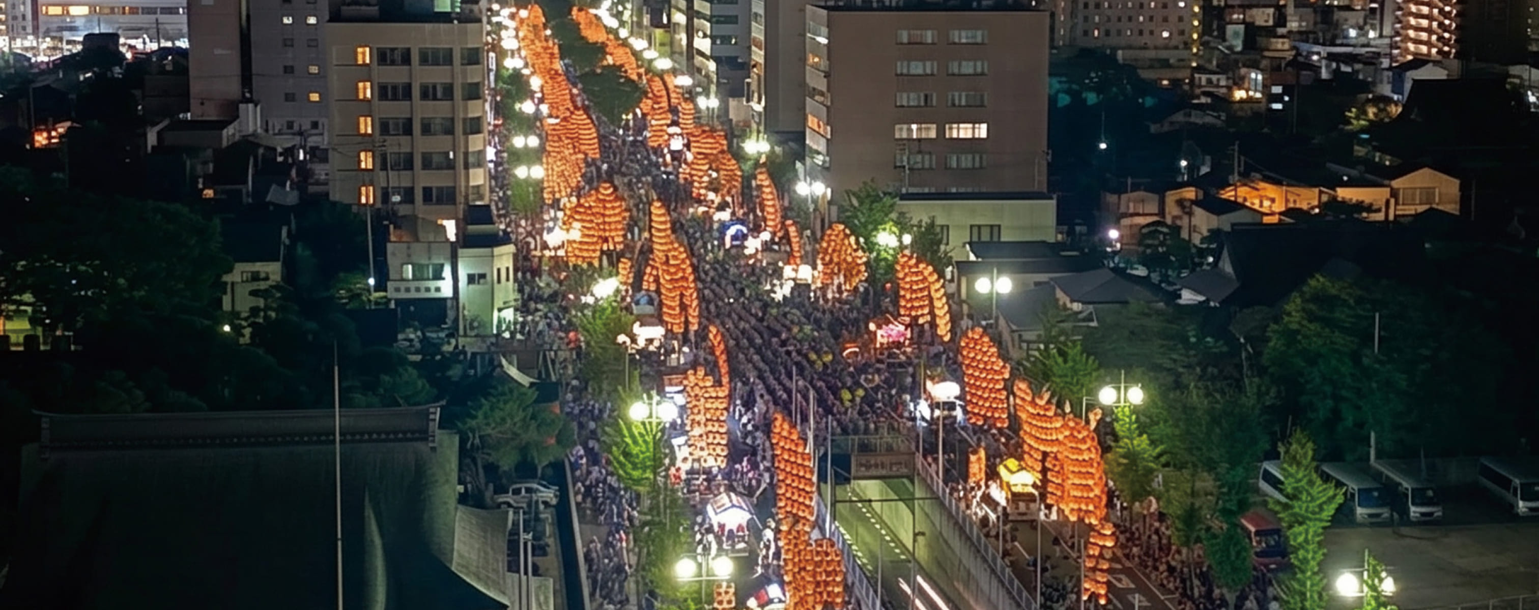 幻想的な竿燈 目の前に広がる